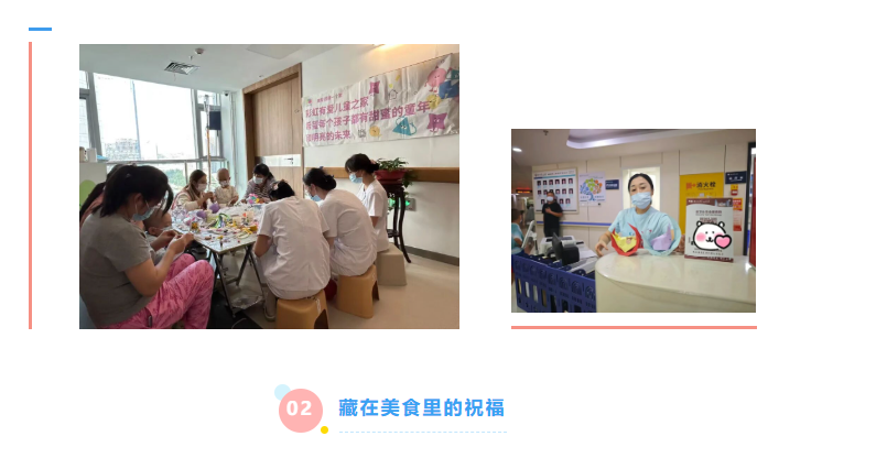 转眼就到了中秋活动当天,彩虹姐姐先来到病房,挨个儿邀请家长们:“咱们的月饼派对要开始啦!”话音刚落,原本安静的病房立刻热闹起来,家长们安顿好孩子们后纷纷跟着彩虹姐姐往彩虹有爱儿童之家走去。