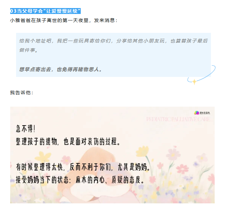 也感谢这些家庭对儿童安宁疗护的信任与接受,让我们有机会去理解、去分享,并以此影响更多的人理解“安宁”,也去理解“爱”的另一种形态。