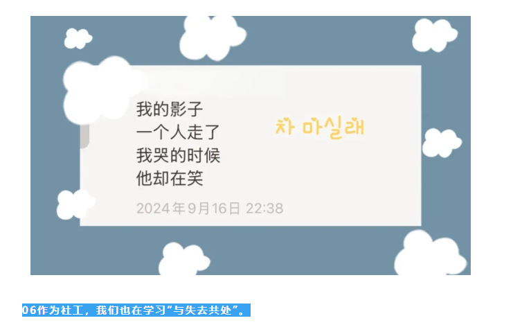 那一刻我也意识到,哀伤辅导最重要的,从来不是“安慰”,而是被理解、被允许难过。当她说“谢谢你”时,我知道,她又向前走了一小步。
