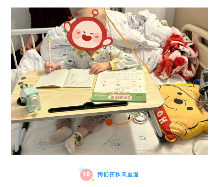 在治疗的间隙,小宇总爱安静地坐在床边,一笔一画认真地学着“画”字。那些歪歪扭扭的字迹,是他用小小的手掌,描出对知识的渴望。
